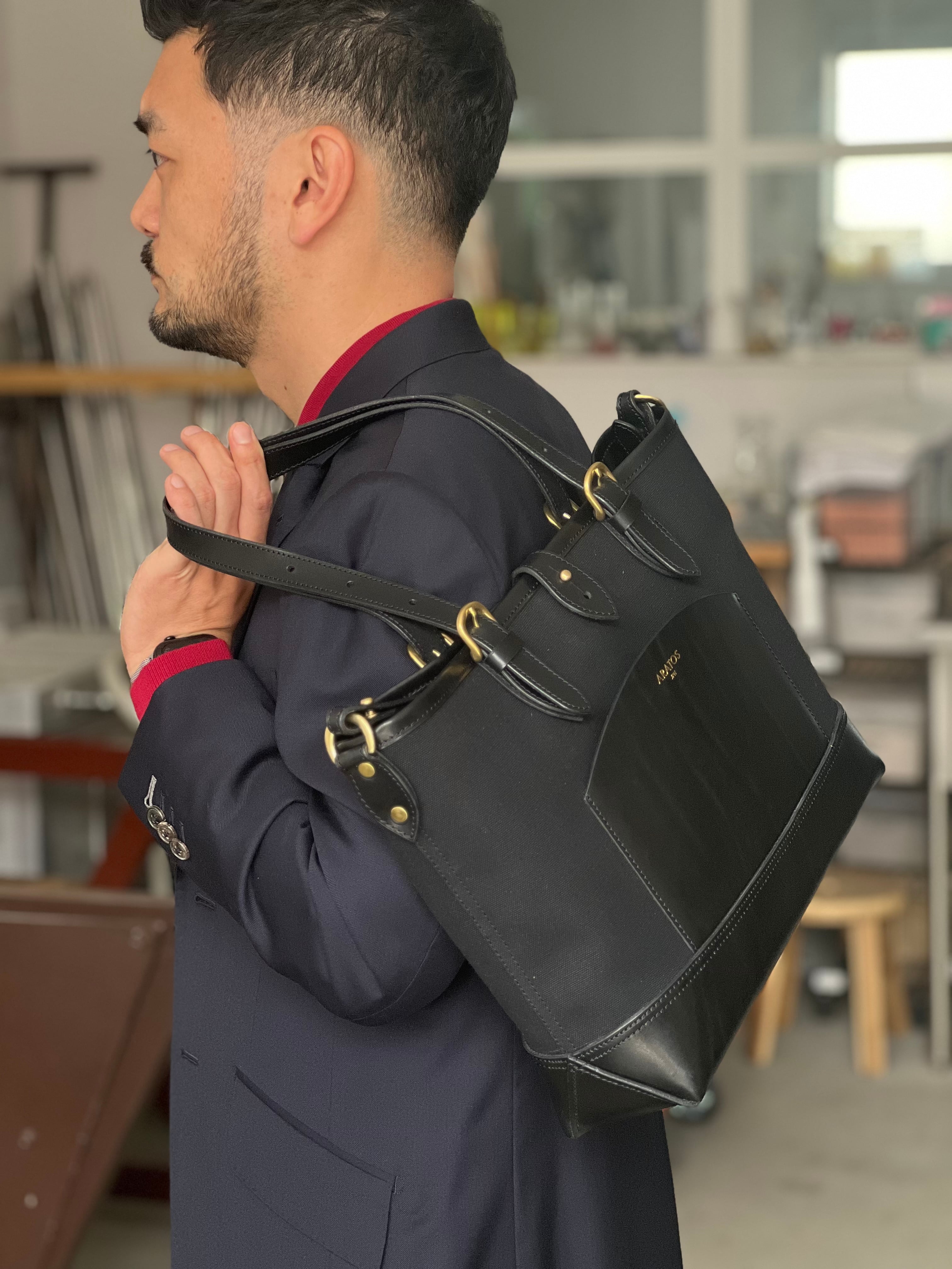 男女問わず使っていただける見た目も使い勝手もいいトートになったと自負しております。