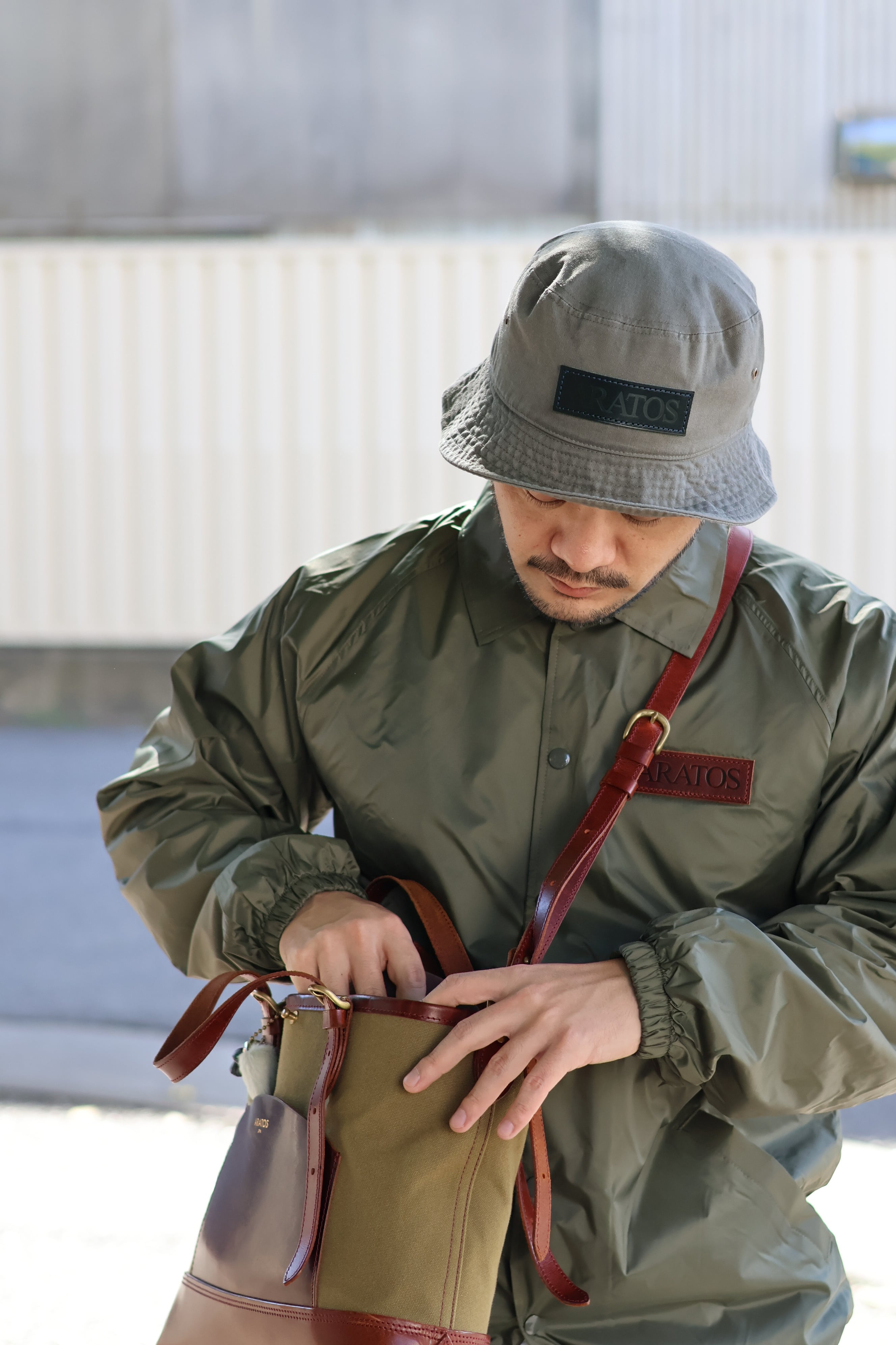 • Aratos Leather Patched Bucket Hat "Brown" Aratos Leather Patched Bucket Hat "Brown" ¥5,500