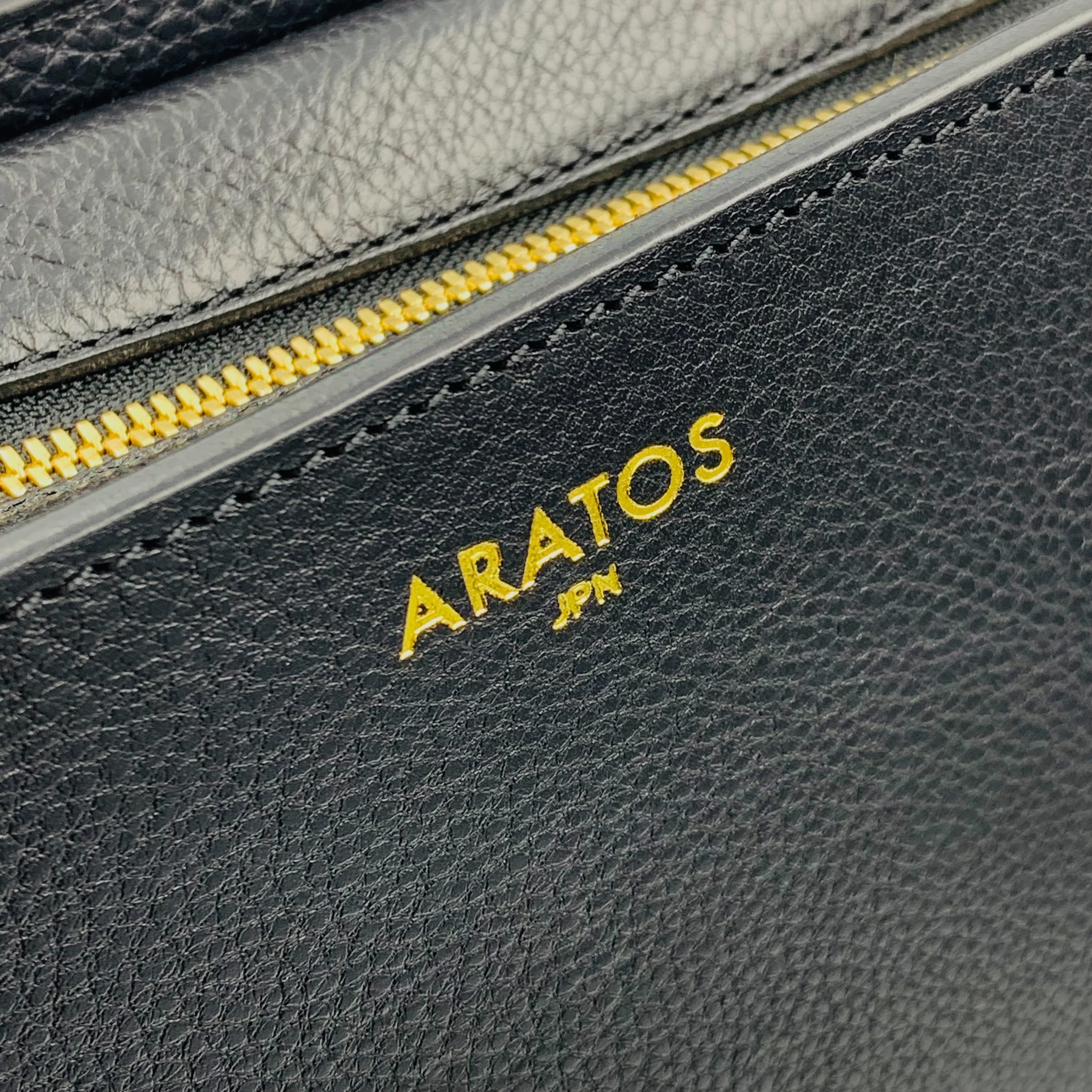 高級感のある金色の箔で Aratosのロゴをあしらいました。